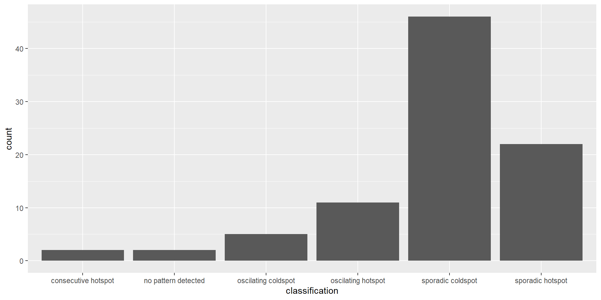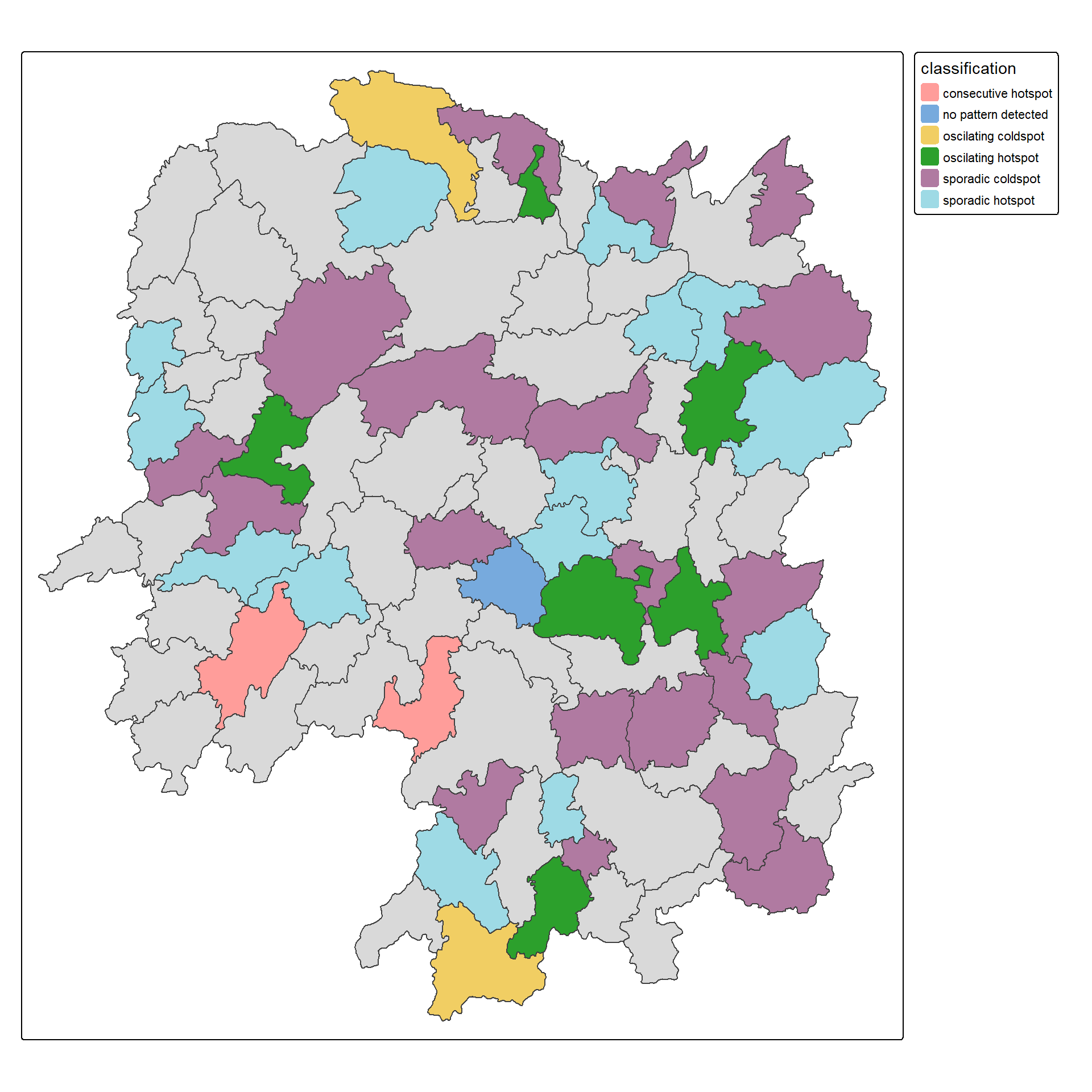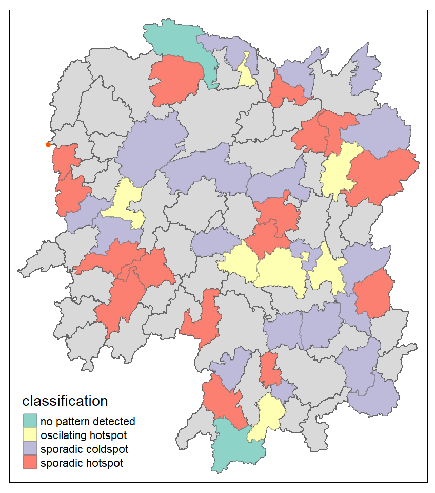 Figure above shows that sporadic cold spots class has the high numbers of county.